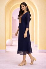 This A-line georgette gown stands out with its clean design and elegant fall, delivering a refined and timeless appeal suitable for all seasons.