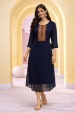 Women’s A-line georgette gowns with neck embroidery are a perfect blend of simplicity and elegance, designed to create a flattering and graceful silhouette for any occasion. Crafted from soft and lightweight plain georgette fabric, this full-length gown offers a smooth texture and a beautiful drape that enhances your overall look. The delicate neck embroidery adds a touch of sophistication and subtle detail, making it an ideal choice for casual gatherings, office wear, and festive events.